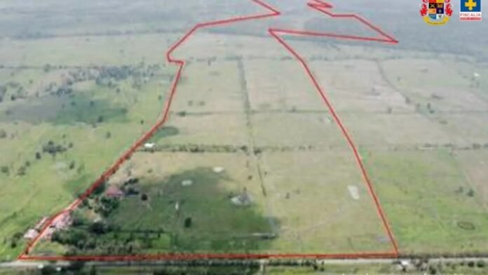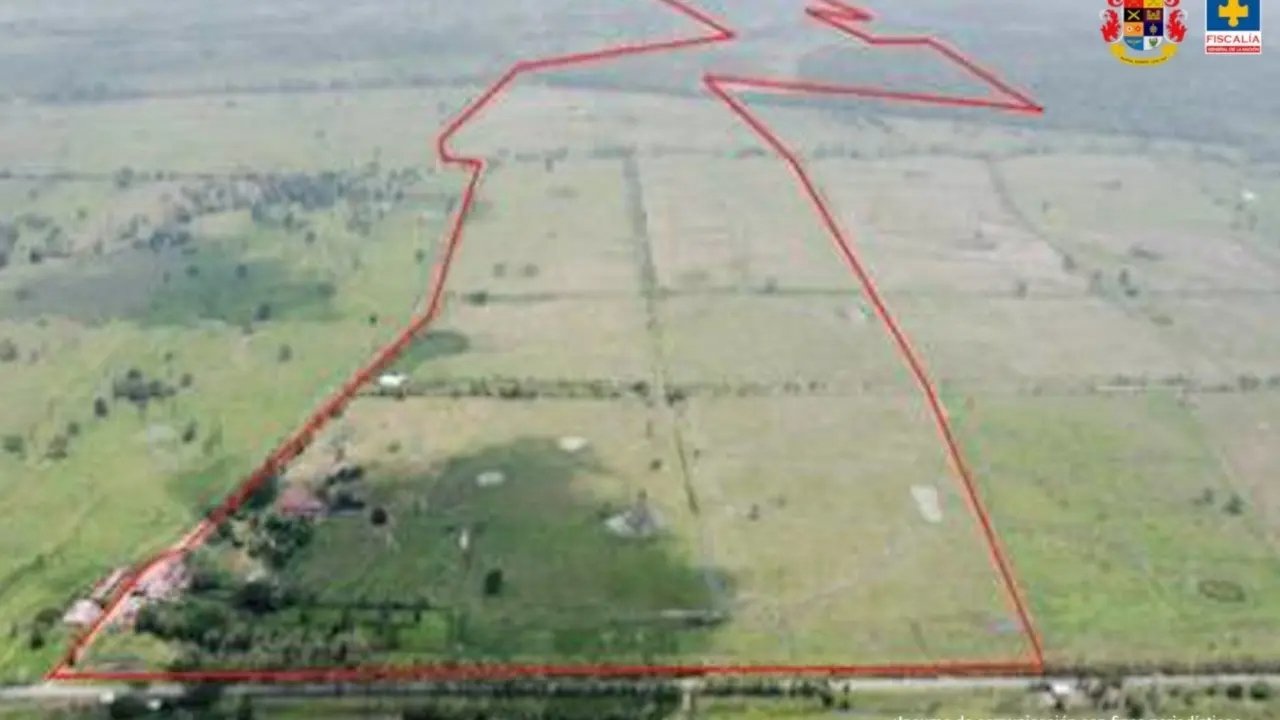La Fiscalía indicó que este terreno fue dividido en 15 predios con matrículas inmobiliarias independientes y posteriormente registrados a nombre de diferentes propietarios, mediante varias transacciones que, presuntamente, buscaban ocultar su origen y dificultar la acción de las autoridades.
